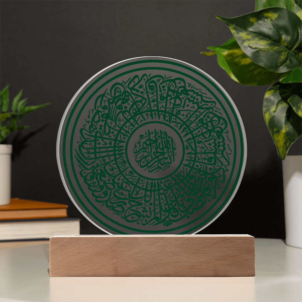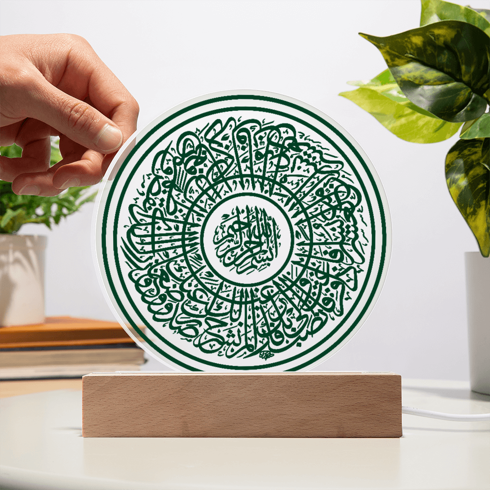 La Lampe Acrylique Sourate Ash-Sharh est une pièce de décoration spirituelle unique, alliant calligraphie islamique et design moderne. Finement gravée sur une plaque en acrylique de haute qualité, elle diffuse une lumière douce et chaleureuse à travers un motif calligraphique représentant la sourate Ash-Sharh (L’Épanouissement).